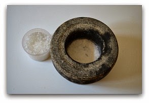 2. Powder the rock candy to a fine powder using a mortar and pestle.