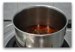 2. Get the spices ready. I have used fresh ginger root, cardamom, black pepper corns, cinnamon, cloves and nutmeg.