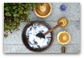 Epsom salt is great for treating cracked heels as it soften the feet really well. To use Epsom salt for treating cracked heels, take 1 cup of Epsom salt in a bowl. Add in 1/4 cup of baking soda and mix well. You can add in herbs and essential oil of your choice to the mixture. Here I have added a handful of dried lavender flowers. To use, take a handful of the mixture in a wide basin. Add in warm water and soak your feet in it till the water turns cold.